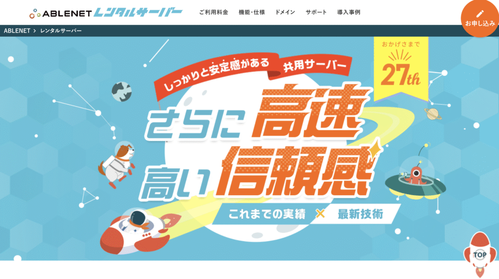 ABLENET(エイブルネット)は、国内で20年以上の運用実績を持つ老舗レンタルサーバーです。