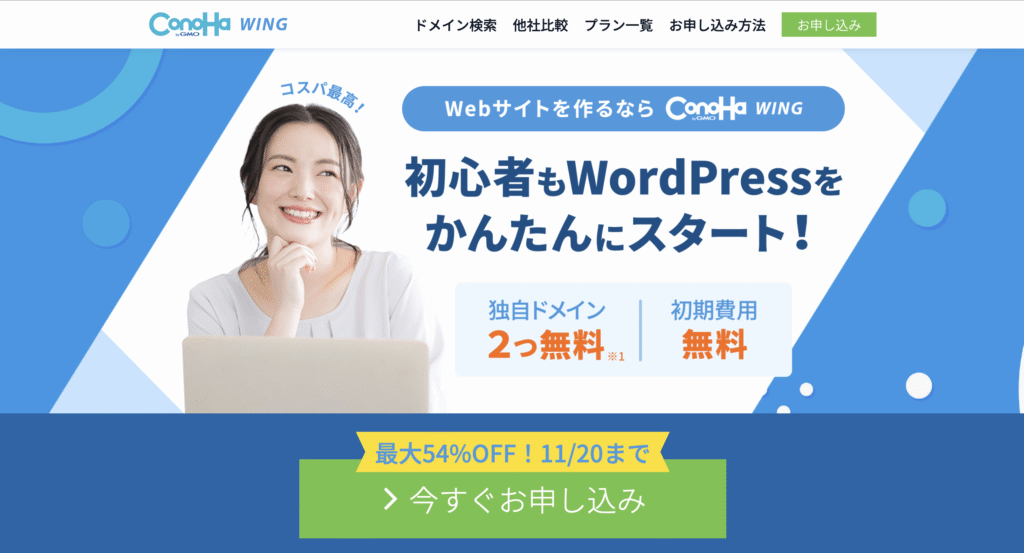 出典:https://www.conoha.jp/wing/lp/01/?banner_id=b05_wing&utm_source=bing&utm_medium=cpc&utm_campaign=brand&utm_content=wing&msclkid=420bdf4d33291713d3a8b6594f68fb4a