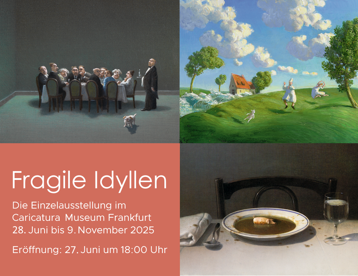 Die Werke von Michael Sowa im Stil alter Meister zeigen eine bürgerliche Kleinstadtidylle, die ins Groteske kippt. Mehr ...