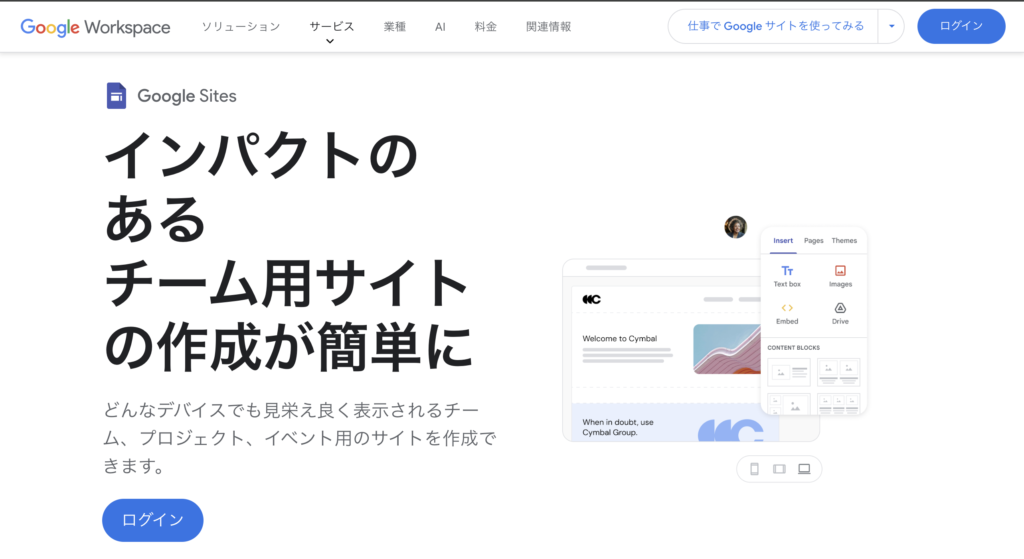 Google Sitesはデザイン面はシンプルに、「限られた機能の中で直感的にさくっと作る」ことを重視する場面で選ばれています。