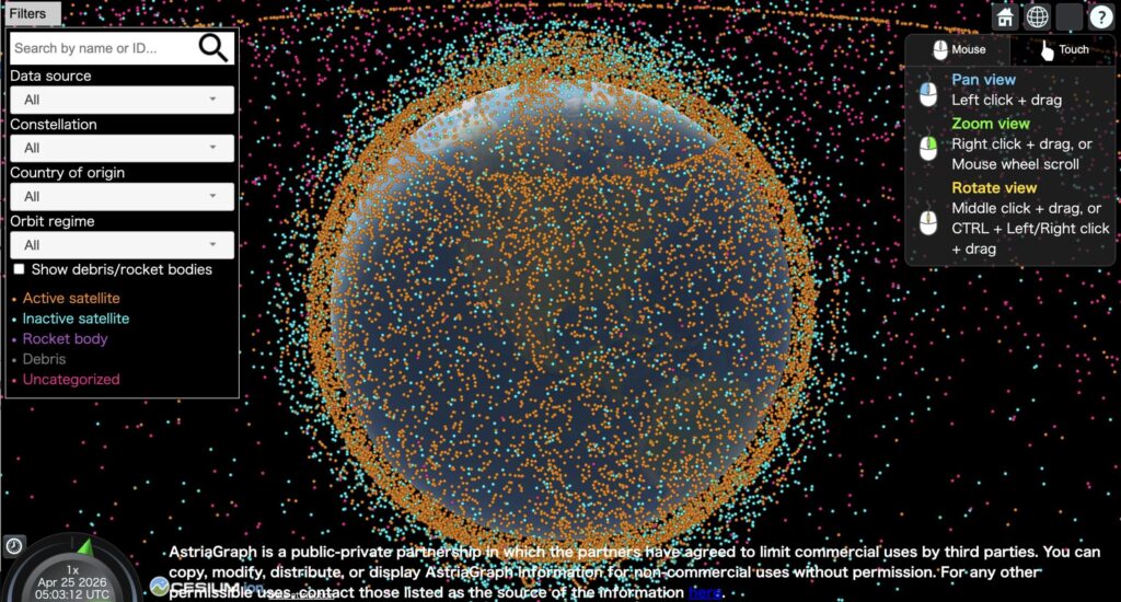 スペースデブリ | AstriaGraph | テキサス大開発。国別・コンステレーション別フィルター | 宇宙政策・国際関係に関心がある方 |