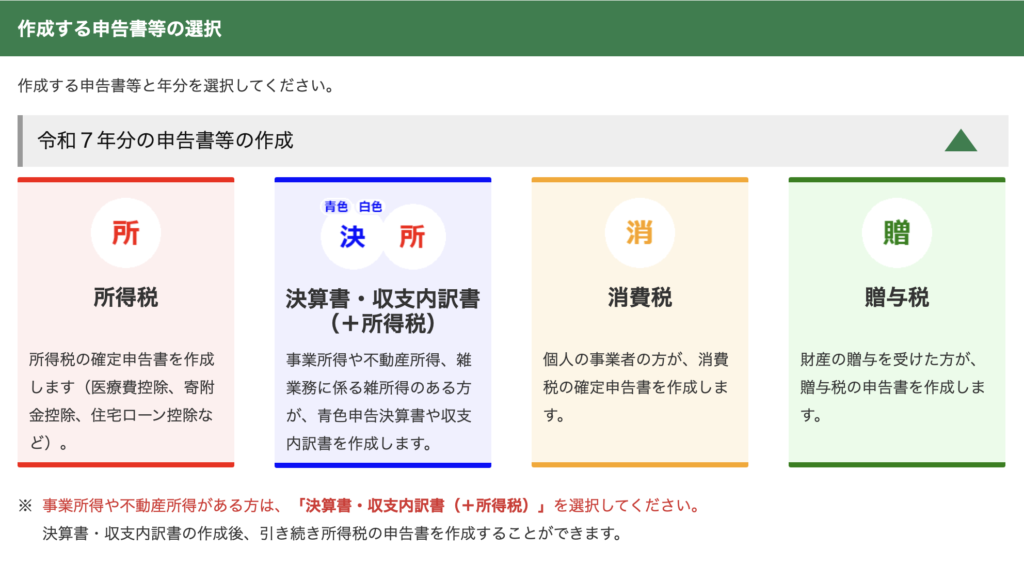 - 手順4申告書の種類を選択