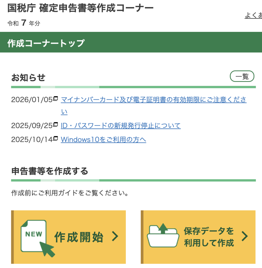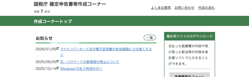 方法①:国税庁の「確定申告書等作成コーナー」で直接入力