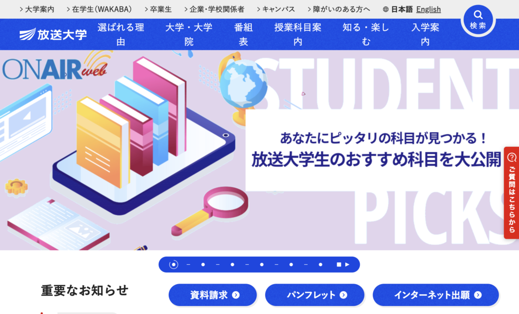 大学公式サイト:https://www.ouj.ac.jp/