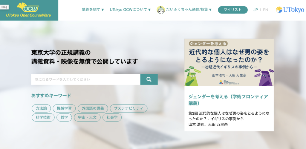 2位:東京大学|UTokyo OCWで触れる研究大学の講義