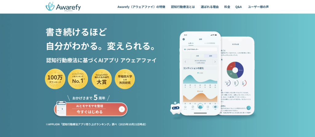 メンタルケアの決定版アプリ「Awarefy(アウェアファイ)」──日常に“気づき”を取り戻す
