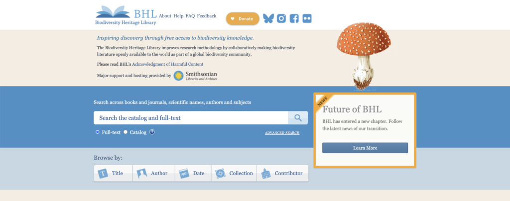 世界各地の自然史博物館、植物園、図書館が協力して、生物多様性に関する文献をデジタル化する国際プロジェクトです。科学的なスケッチや動物・植物の精緻なイラストなど、膨大な学術資料がインターネット上で公開されています。本拠地という特定の場所はなく、ロンドン自然史博物館やスミソニアン協会など、世界トップクラスの機関が共同で運営しています。