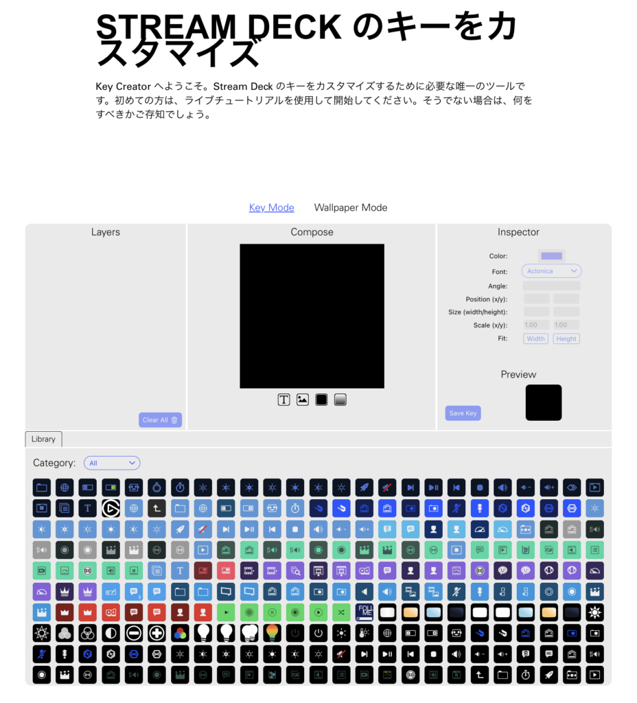 もっとも美しく満足度が高いのは「全ボタンを使って1枚の絵を見せる」設定です。これにはElgato公式の「Key Creator」を使うのが一番の近道です。