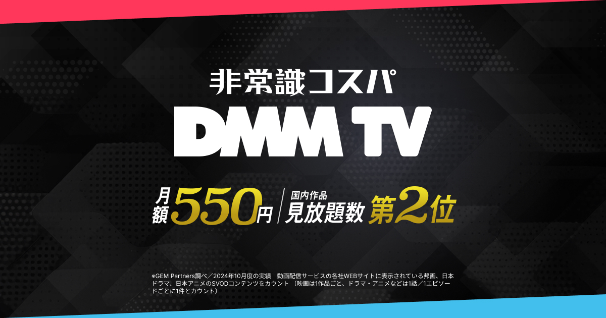 DMM TVは、低価格ながらアニメに強く、総合型の中でもコスパ重視で使いやすいサービスです。 アニメを軸にしつつ映画やドラマも楽しめるバランス型です。 他サービスと併用して日常使いに向いています。